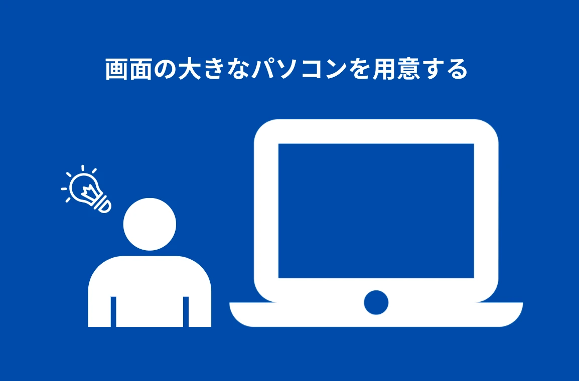 ①画面の大きなパソコンを用意する