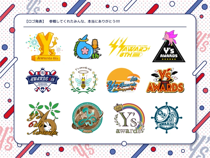 前回に引き続き今回も社内でロゴのコンペを開催しました。12名の社員がロゴコンペにご参加して下さり、そんな素敵なロゴ案の中からY's Awards の看板となるロゴデザインを決める総選挙をしました。