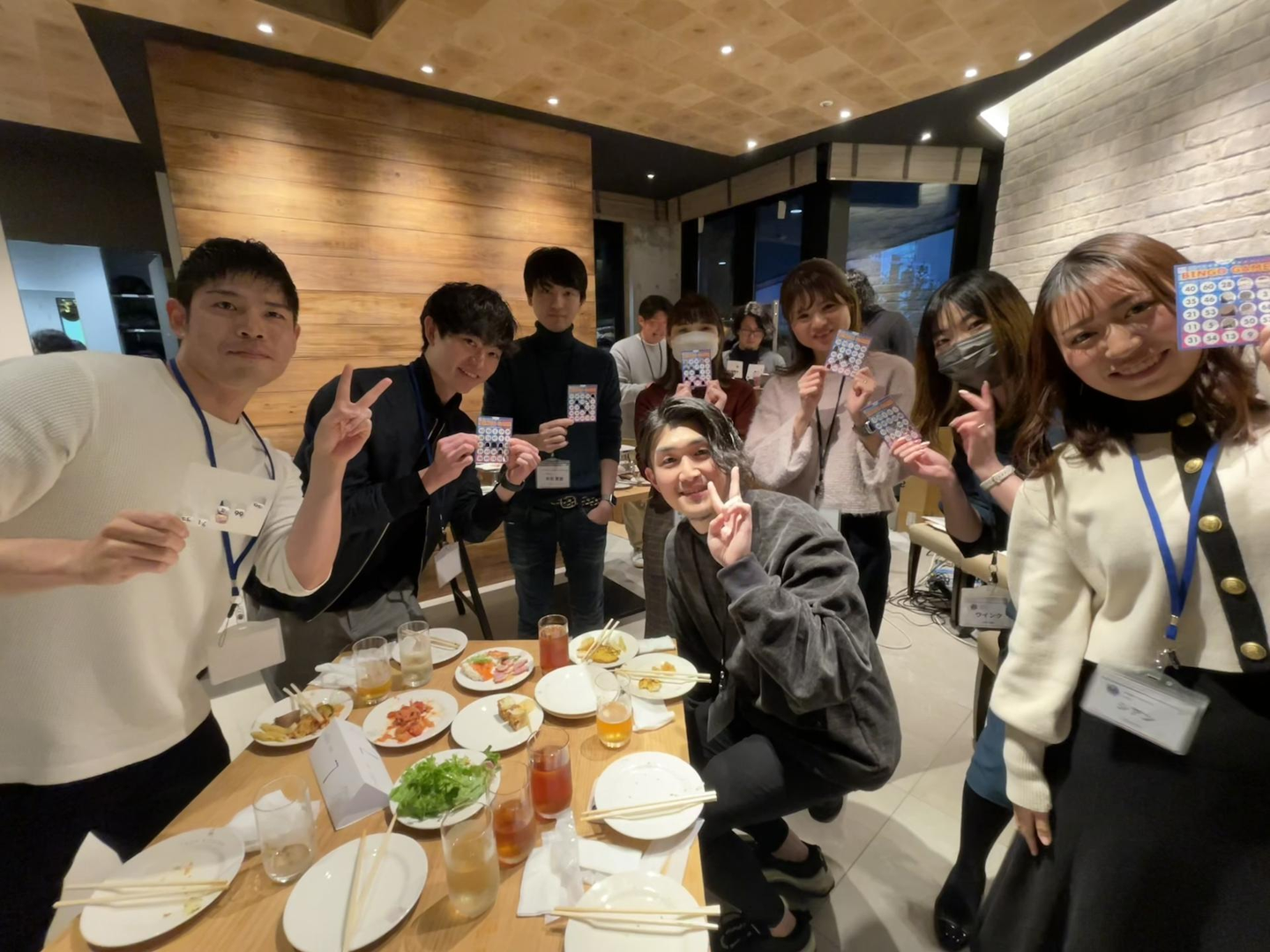普段なかなか会うことのできないメンバーや、忘年会初参加の新入社員など、こういったイベントを通じてコミュニケーションをとっています。仕事の話、プライベートの話など、随所で盛り上がりを見せていました!